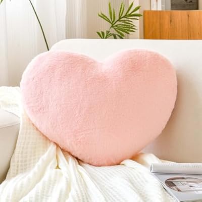 This fluffy pink heart-shaped throw pillow is made of soft faux rabbit fur—perfect for decorating a kid's room or adding cozy vibes to a bed. The cute pink color screams Valentine's Day.